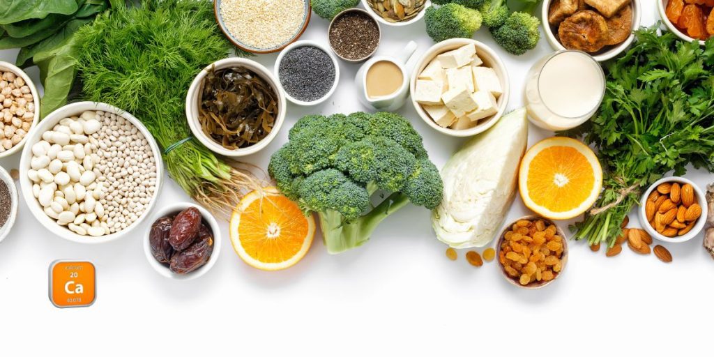 Σε ένα μεσογειακό πρότυπο διατροφής τα πράσινα φυλλώδη λαχανικά (πχ. σπανάκι, μπρόκολο) και τα φρούτα (πχ. αποξηραμένα σύκα, σταφίδες, ακτινίδια, πορτοκάλια) αποτελούν σημαντική πηγή ασβεστίου.