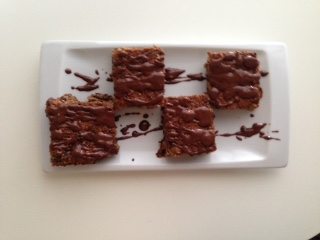 Στο multi λιώνω τα φρούτα με το γάλα κ προσθέτω σε ολα τα υπόλοιπα.Ανακατεύω καλά και αφού στρώσω σε φόρμα 24 cm λαδόκολα τοποθετώ το μίγμα. Ψήνω 10′ στους 180 κ άλλα 10-15 στους 160. Αφήνω να κρυώσουν αρκετά (όχι εντελώς) και κόβω σε μερίδες. Λιώνω σε μπέν μαρί τα υλικά του γλάσου κ απλώνω με ενα κουτάλι πάνω απο τις κρύες μπάρες.