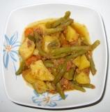 Σε μια χύτρα ή σε μια κατσαρόλα σοτάρετε ελαφρά με το λάδι, το κρεμμύδι, τα φασολάκια- πατάτες- καρότα και τον κιμά… (5-8 λεπτά)