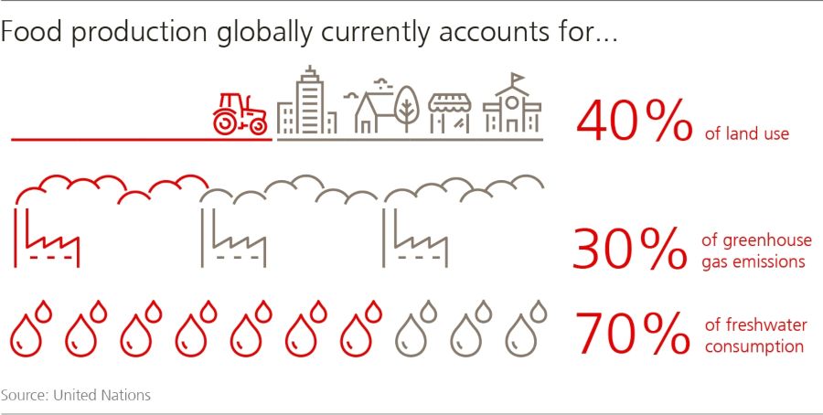 - The current agricultural system is unsustainable, warns a new report by UBS Global Wealth Management’s Chief Investment Office