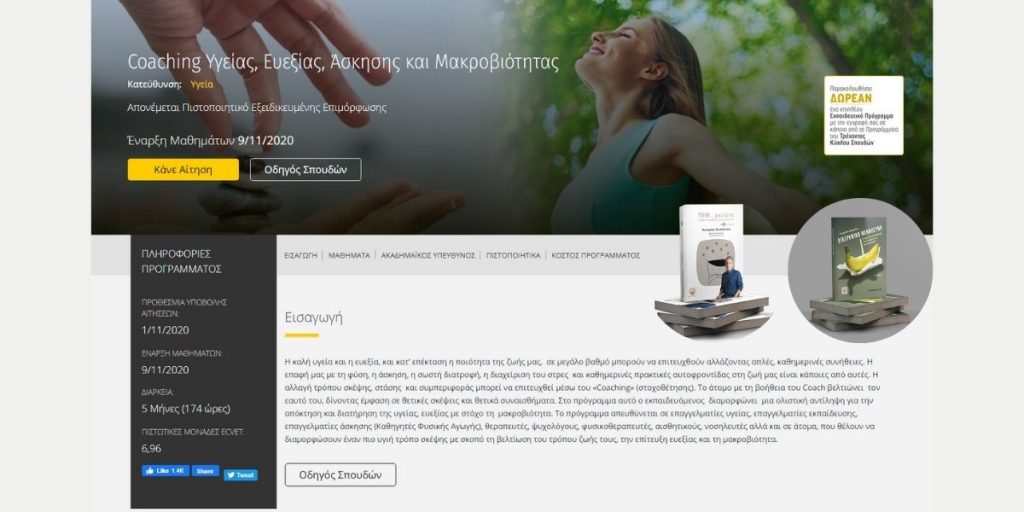 Θεωρήθηκαν άξια ανάμεσα σε άλλα για τη διδακτέα ύλη του προγράμματος Coaching Υγείας, Ευεξίας, Άσκησης και Μακροβιότητας, του Καποδιστριακού Πανεπιστημίου Αθηνών.