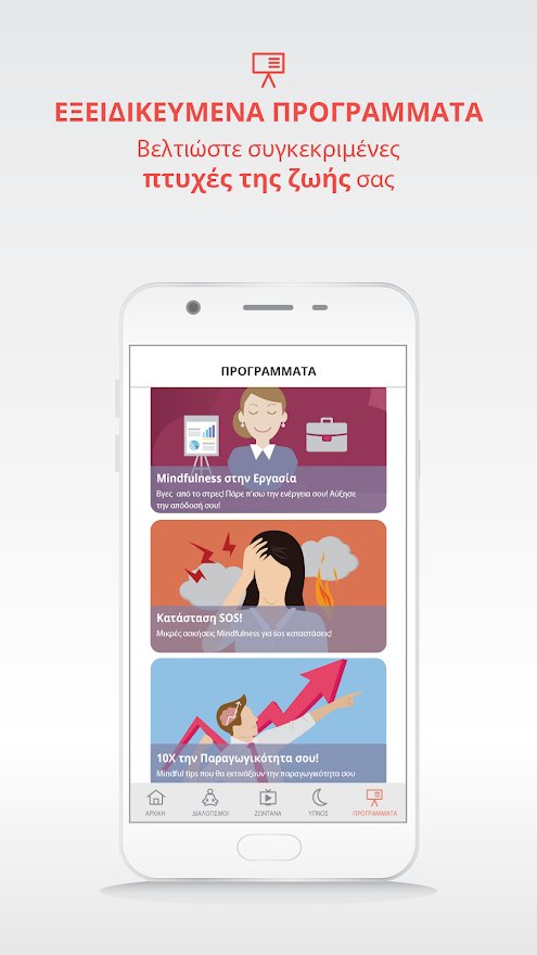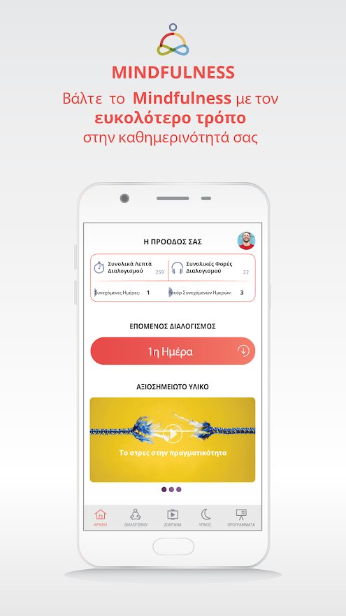 Ο χρήστης της εφαρμογής, μπορεί μέσα από την πλατφόρμα του Mindfulnessgreece να: