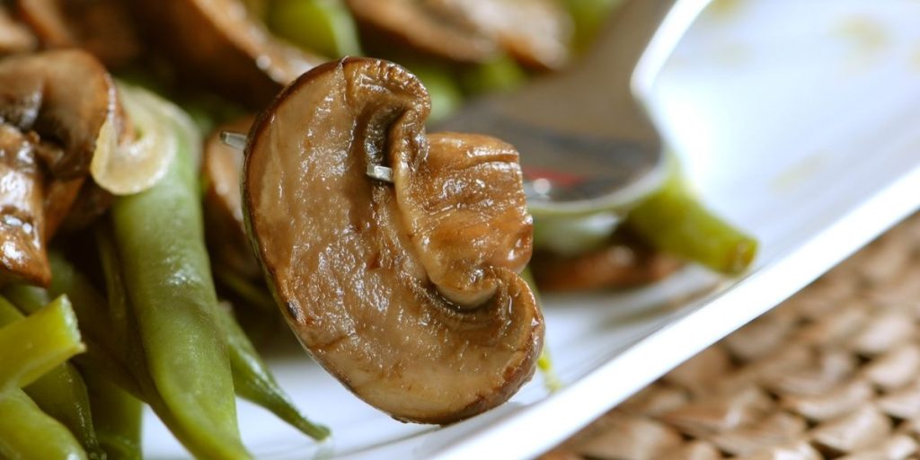 Τα φασολάκια και τα μανιτάρια είναι ιδιαίτερα επιτυχημένος συνδυασμός. Αν προτιμάτε, μπορείτε να χρησιμοποιήσετε φρέσκα φασολάκια, αντί για κατεψυγμένα.