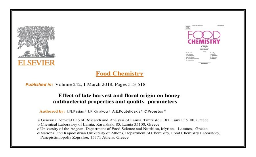 Στο άρθρο συμπεριλαμβάνονται όλοι οι πίνακες με τα αποτελέσματα της έρευνας και των αναλύσεων. Link: Effect of late harvest and floral origin on honey antibacterial properties and quality parameters